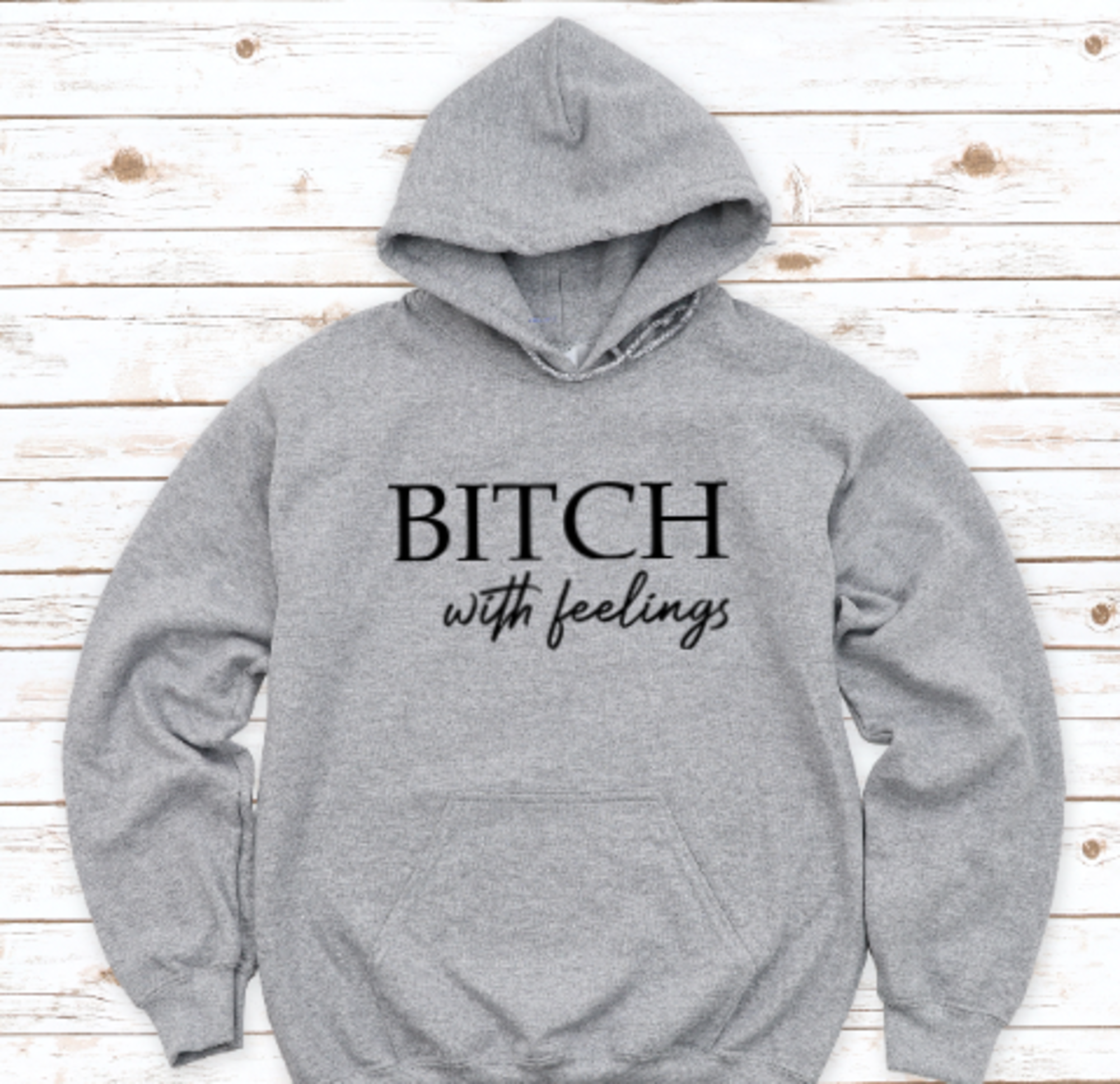 Bitch With Feelings, Gray, Unisex Hoodie Sweatshirt