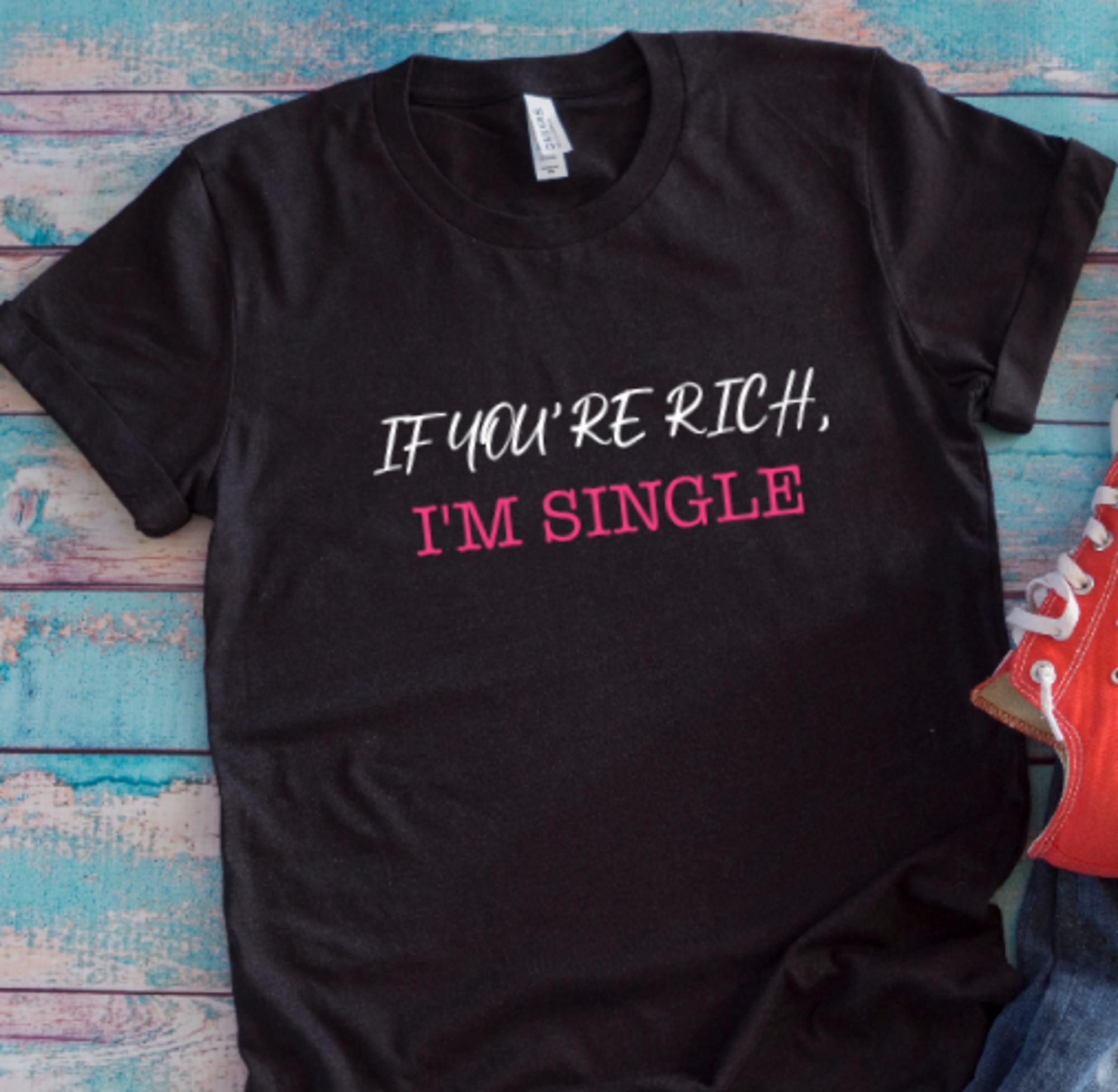 If You're Rich, I'm Single, Unisex Black Short Sleeve T-shirt