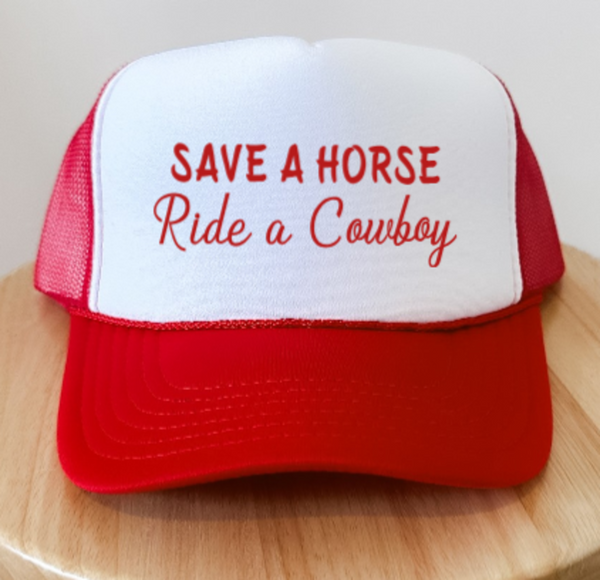 Save a Horse, Ride a Cowboy, Red, Men's and Women's Otto Brand Trucker Hat