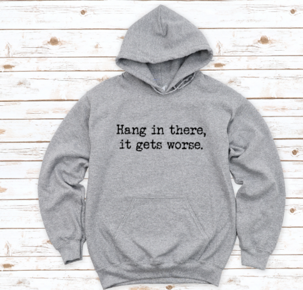 Hang in There, It Gets Worse, Men's and Women's Gray, Unisex Hoodie Sweatshirt