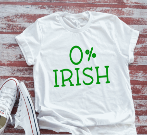 0% Irish, St. Patrick's Day, Unisex White Short Sleeve T-shirt